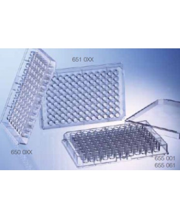 Piastre a 96 pozzetti, originali Greiner Bio One, trasparenti in Microlon 200 o 600, a media o alta capacità legante, rispettivamente.